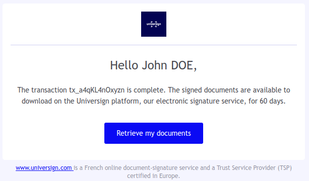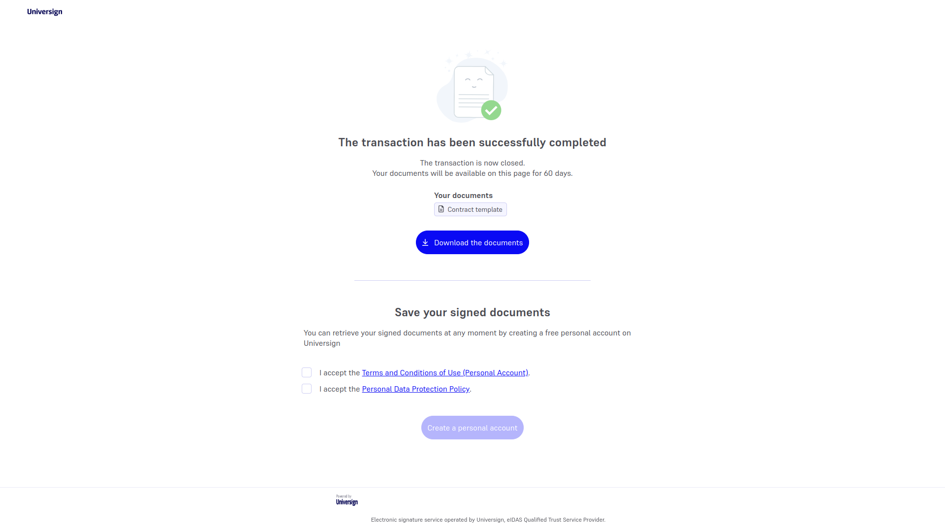 Tus documentos firmados están disponibles en tu Espacio Personal donde puedes descargarlos o eliminarlos.